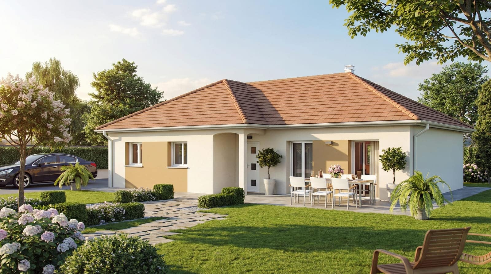 Avec 7 déclinaisons de base, la Vésontia est une invitation à concevoir une maison sur mesure à petit prix. Que vous rêviez d’un grand séjour pour vos réunions de famille, d’une suite parentale pour plus d’intimité, ou d’un bureau pour travailler en toute tranquillité, ce modèle s’adapte à toutes vos envies.