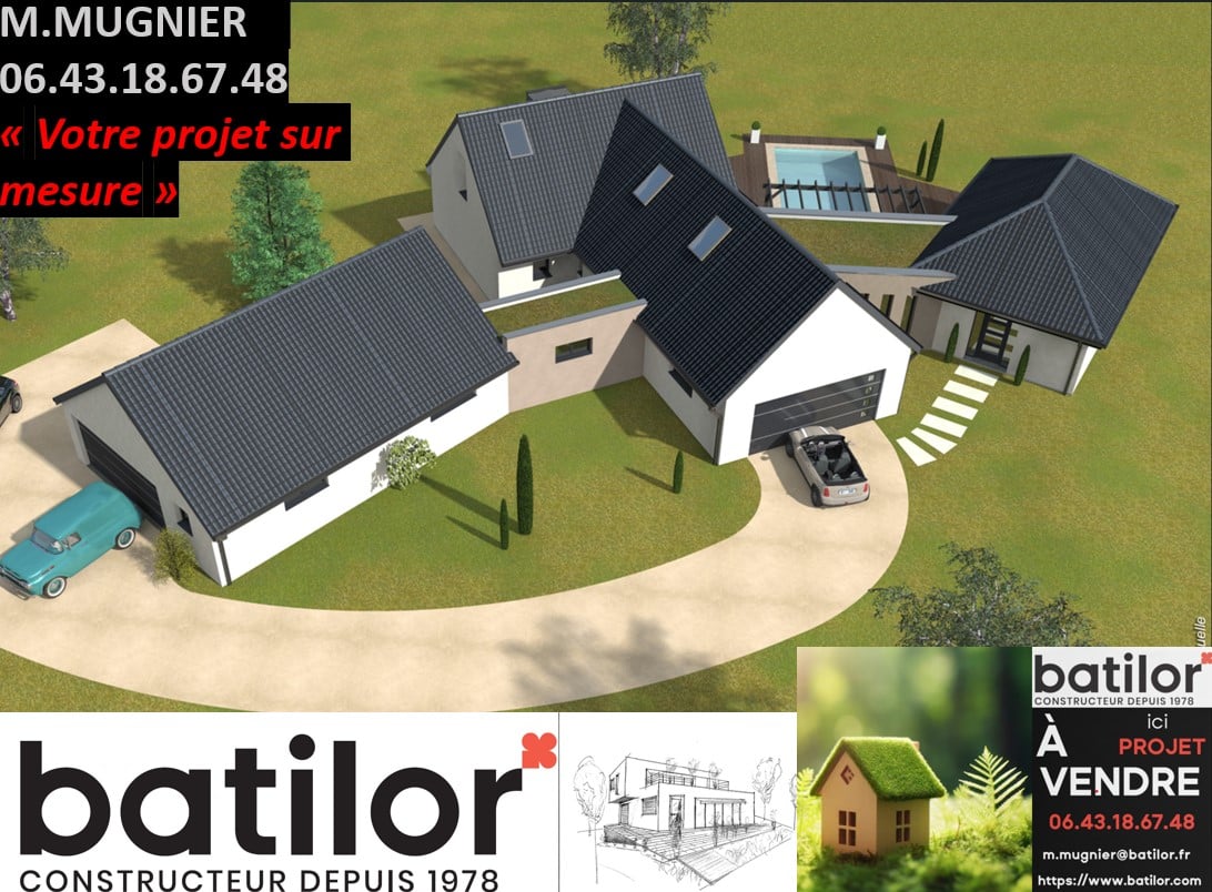 *Prix total se décomposant ente un prix terrain et un prix de construction, communiqué à titre indicatif et susceptible de modifications. La Société Batilor n’est pas mandaté pour réaliser la vente du terrain. Sauf mentions express dans l’annonce, le prix indiqué s’entend avec installation de chauffage par pompe à chaleur avec plancher chauffant (hors garage et sous-sol éventuels et radiateurs si étage) et carrelage sur toute la surface habitable de la construction (hors chambres, bureaux et étage) mais hors frais de notaire et coûts éventuels de viabilisation pour le terrain. Le prix tient également compte d'une construction sur un terrain réputé plat et de portance minimum de 2kg/cm². Toute contrainte spécifique d'altimétrie pourra par ailleurs faire l'objet d'un surcoût éventuel. La société Batilor s’efforce d’assurer une mise à jour régulière de ses annonces. Elle ne peut cependant être tenue pour responsable d’un éventuel défaut de mise à jour d’une quelconque de ces annonces. Visuels non contractuels. L’assurance Dommage Ouvrage peut être souscrite via Batilor en sus. Les informations sur les risques auxquels ce terrain est exposé sont disponibles sur le site Géorisques (www.georisques.gouv.fr). Différents modèles disponibles pour ce terrain (RC professionnelle, décennale, dommage-ouvrage).