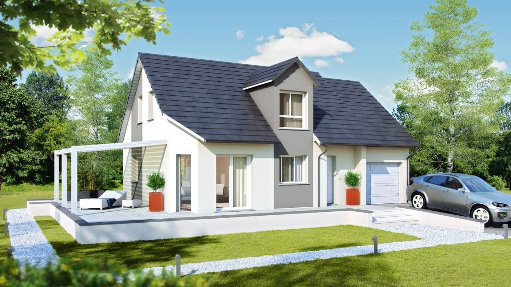 Cette maison Batilor est une réalisation dont nous sommes fiers. Construire dans les environs de Belfort, ses lignes modernes et sophistiquées en font une maison vraiment élégante. Cette demeure prend peu de place au sol puisqu’elle dispose d’un étage. On aime son garage intégré sur le flanc et ses nombreuses ouvertures. Les bandes anthracite des murs faisant écho au toit est du plus joli effet. La fenêtre en chien-assis au centre est très chic. Son intérieur moderne et fonctionnel vous ravira.